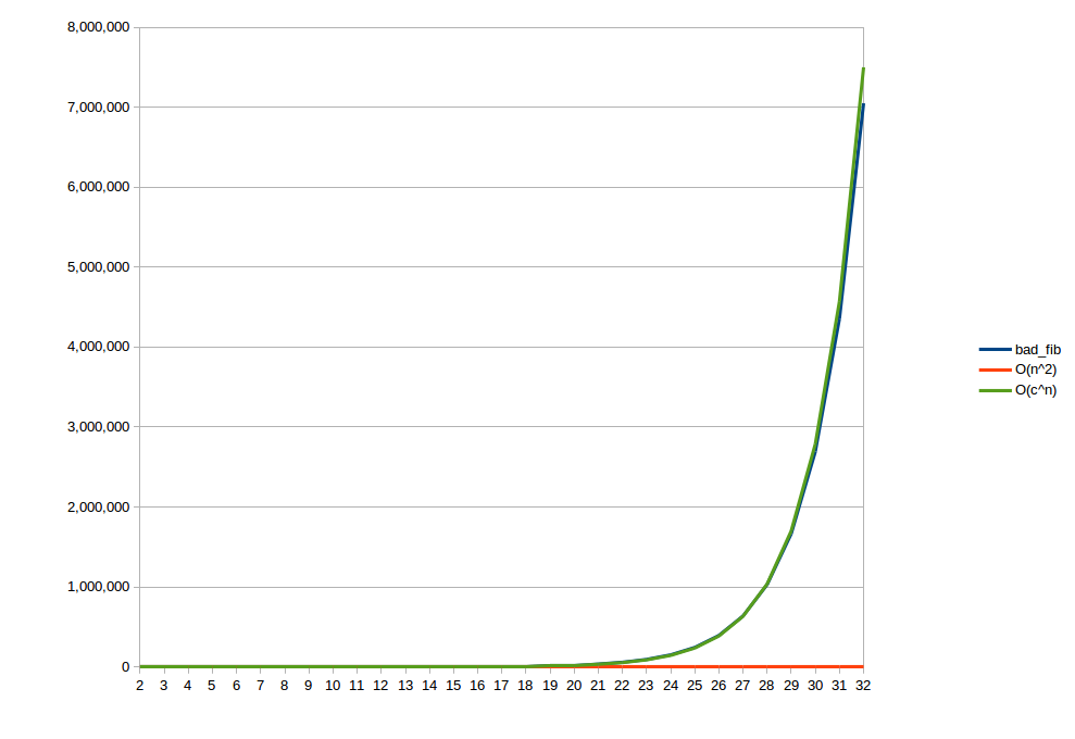 This shows some of the measurements I used to work out the order of the fibonacci algorithm. I mostly played around with numbers and eyeballed the curve fit.