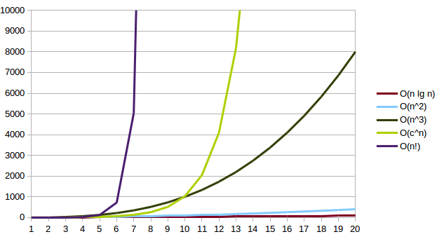O(n2)O(nc) where c > 1O(cn)O(n!)All of the O(nc) algorithms are pretty easy to